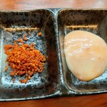 最上無二 - 鬼豚丼新味で使われる、複雑で奥行きある辛味スパイスやチリマヨ(店主さんのご厚意で味見)